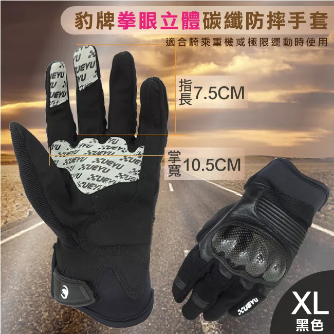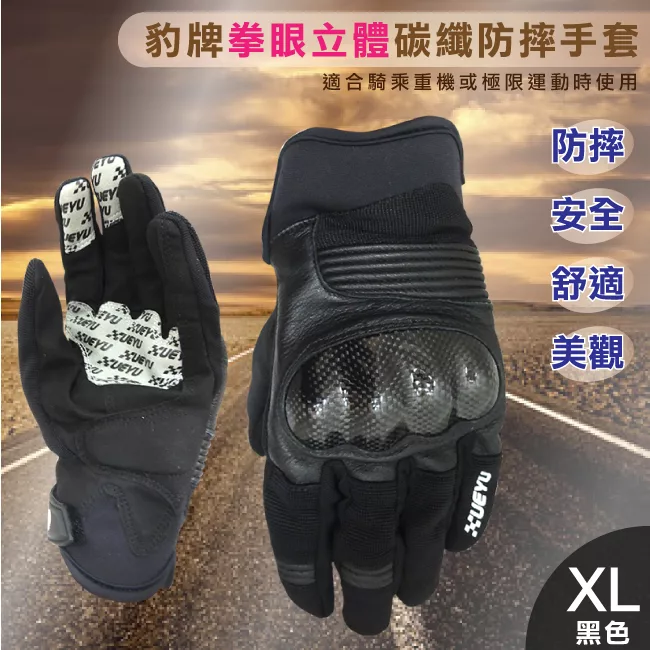 豹 牌 拳眼立體碳纖防摔手套 XL-黑色CH-15 評價